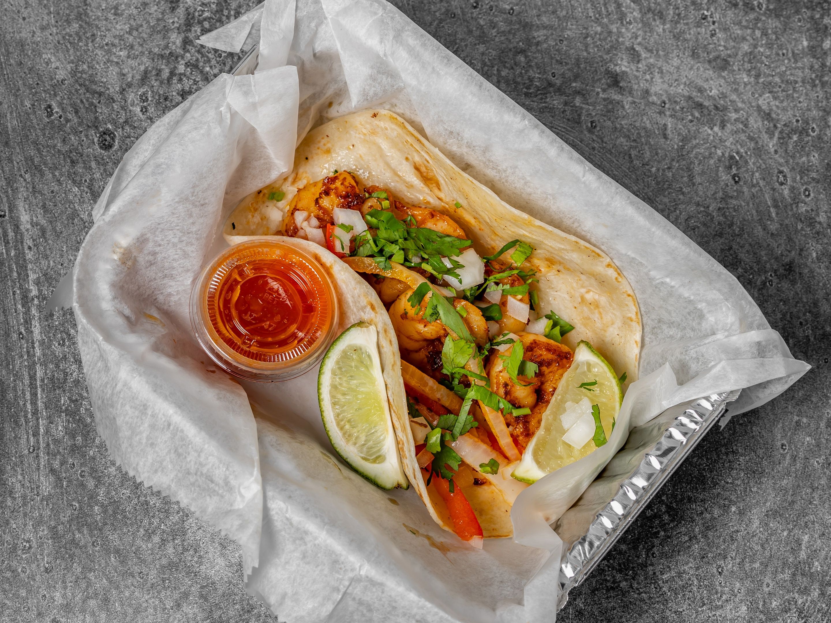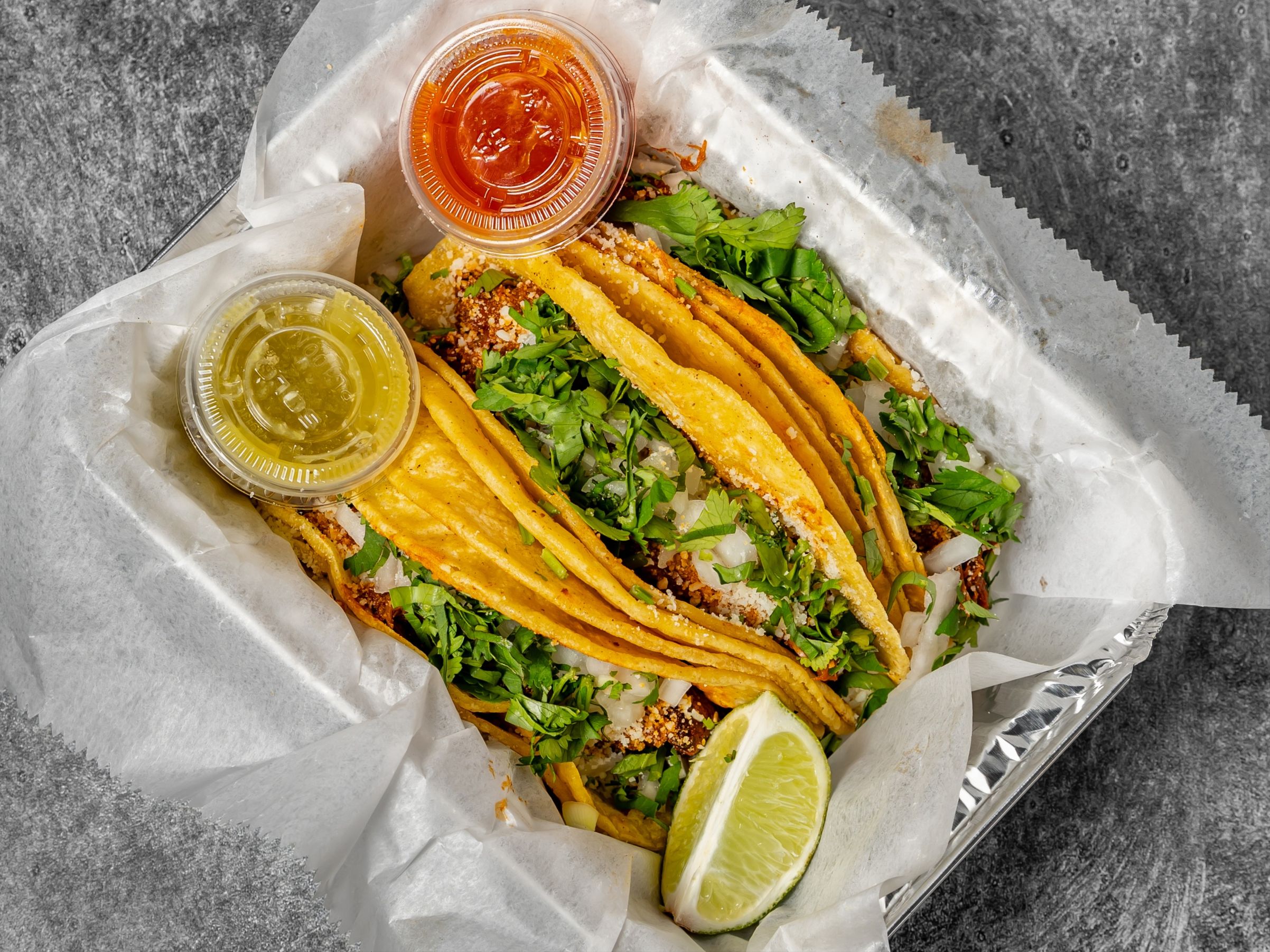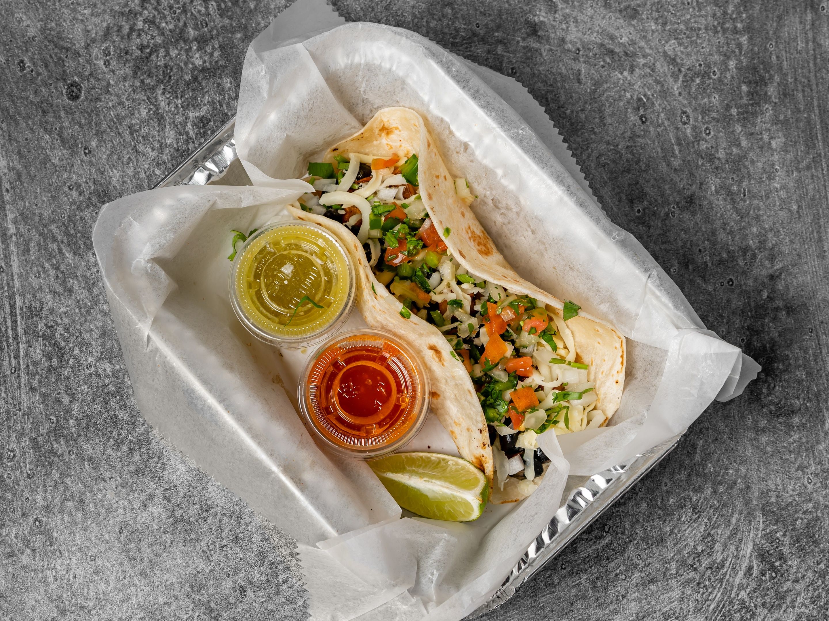 A pack of 10 tacos (in multiples of five) and 2 large sides
